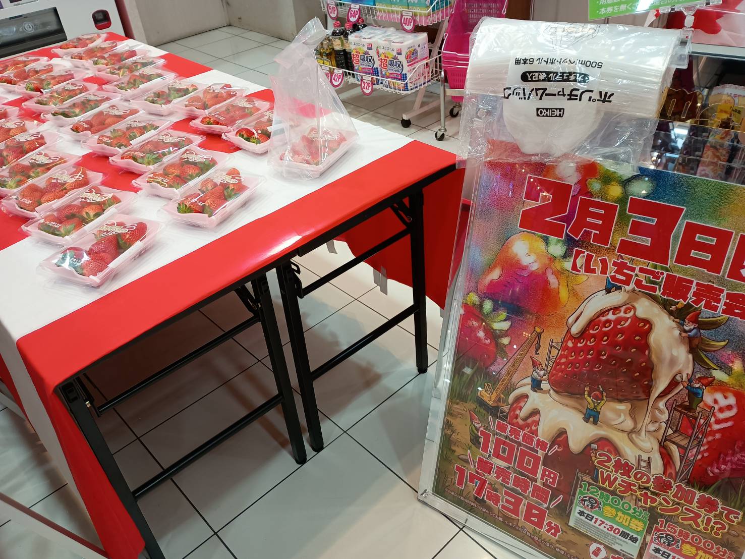 🎁 イベント状況(いちご販売会&店内熱気)